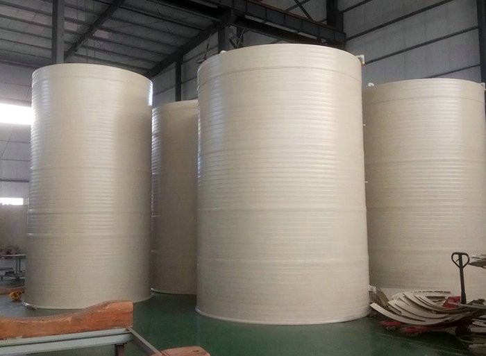 4、加工需要采用鋼制模具,在加工前需要采用天然氣預(yù)熱,開機成本大,PP貯槽直接采用聚丙烯板材卷成罐體,成本??;