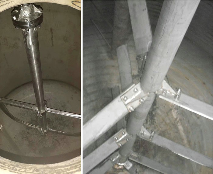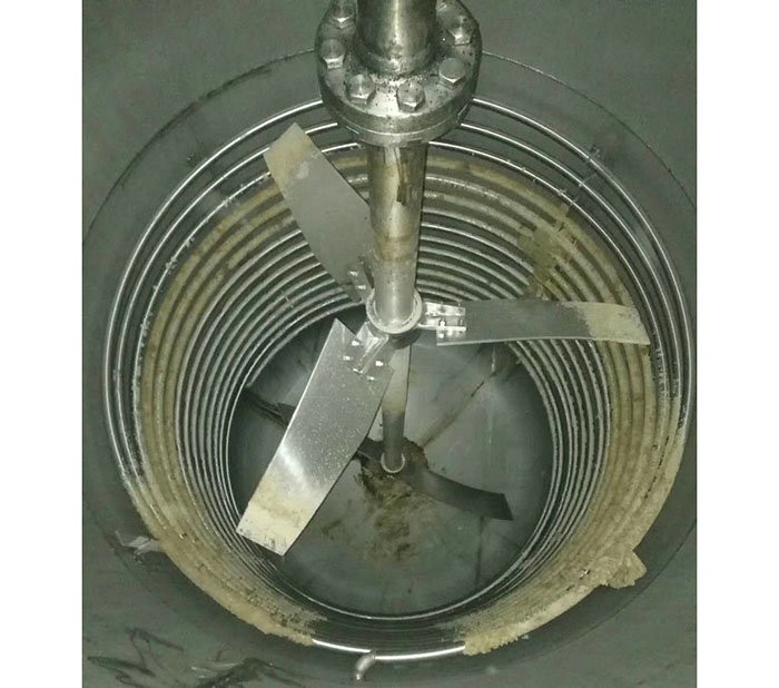 常規(guī)的攪拌形式有錨式、槳式、渦輪式、推進(jìn)式、框式等,攪拌裝置在高徑比較大時(shí),可用多層攪拌槳,特殊產(chǎn)品甚至?xí)褂幂^為復(fù)雜的MIG式攪拌。