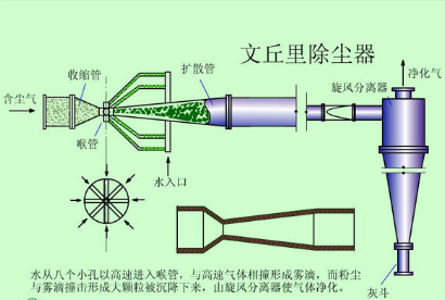 文丘里是一款新型除塵器,在水膜除塵器煙氣進(jìn)口管道上安裝一個(gè)文丘里流道,在文丘里喉口噴水,因吸水凝聚成較大的顆粒。